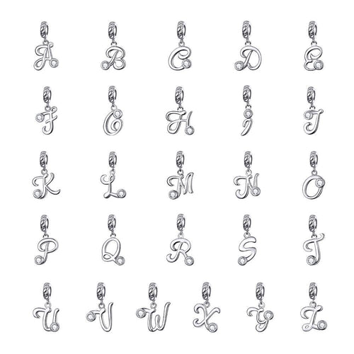 925 Sterling Silver CZ Alphabet Letter A-Z Dangle Charm