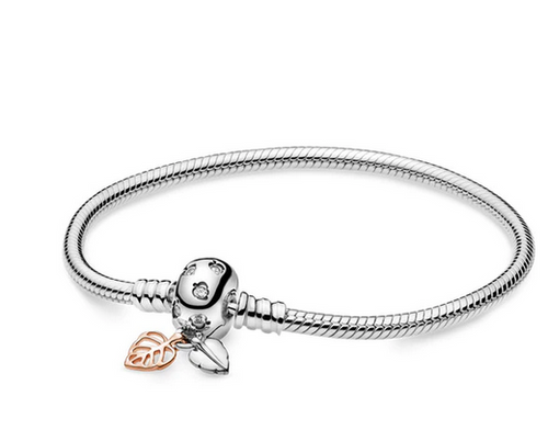 925 Sterling Silver Leaf Two Tone Snake Bracelet