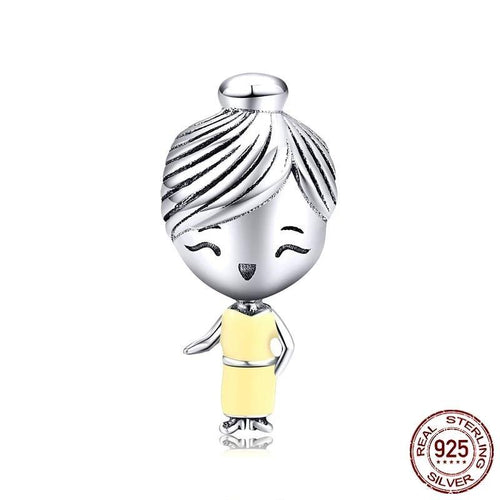 925 Sterling Silver Mom Yellow Dress Bead Charm