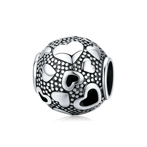 925 Sterling Silver Radiating Love Mom Heart Bead Charm