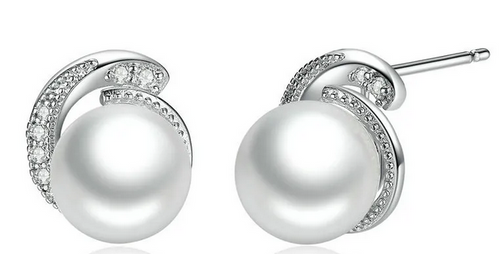 925 Sterling Silver White Pearl Push-back Stud Earrings