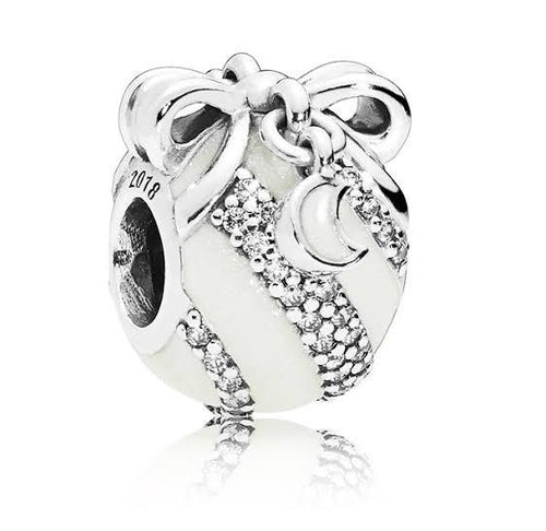 925 Sterling Silver White Enamel Christmas Gift Ball Bead Charm