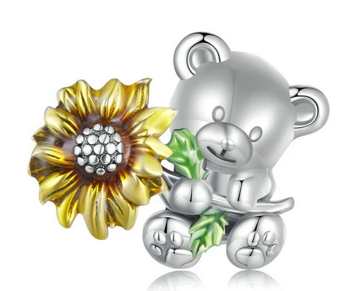 925 Sterling Silver Blue CZ Daisy Bead Charm