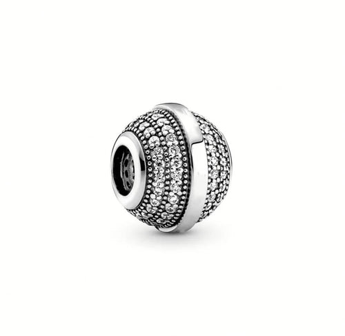 925 Sterling Silver Clear CZ Glitter Ball Bead Charm