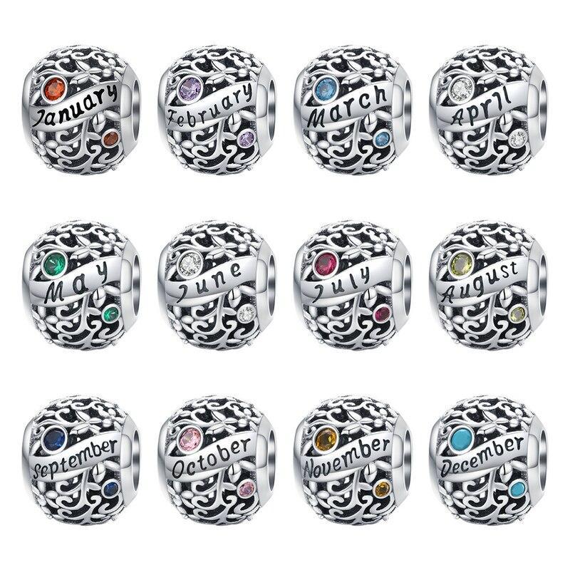 925 Sterling Silver Birthstone and Birthmonth Bead
