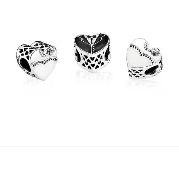 925 Sterling Silver His and Hers Wedding Outfit Heart Bead Charm