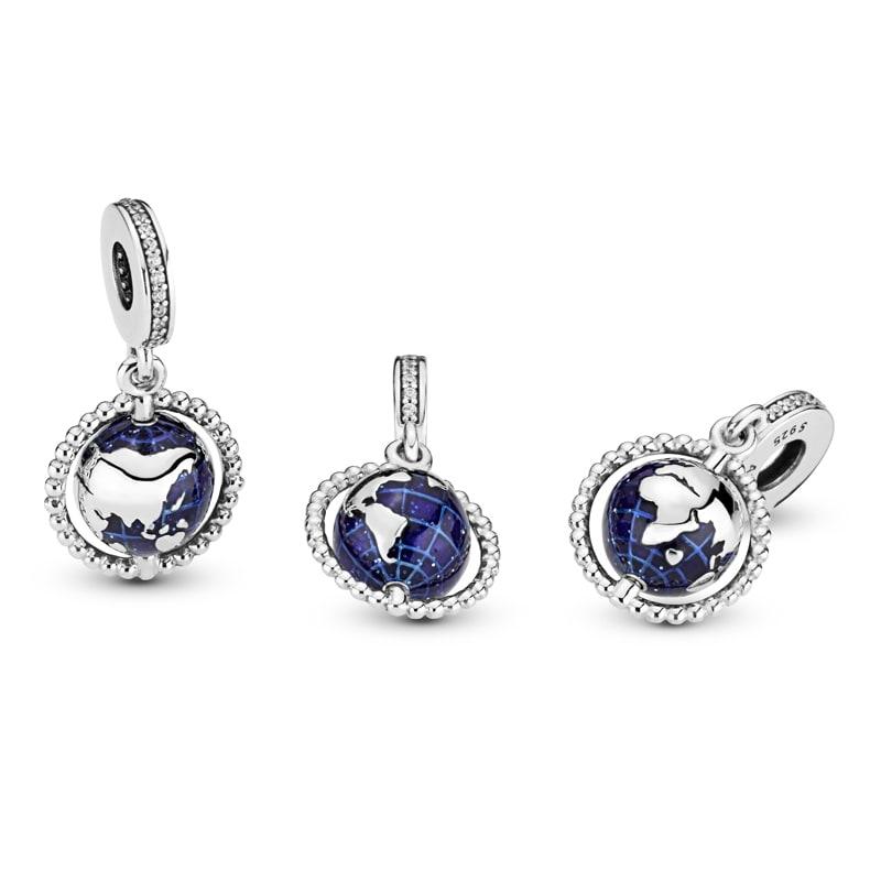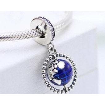 925 Sterling Silver Spinning Globe Dangle Charm